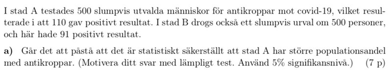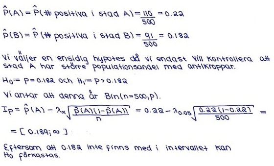 Men enligt facit är detta fel ( ska inte förkastas) och de har använt sig utav en annan metod, varför fungerar inte min metod här? Denna metod har används på liknande uppgifter i tidigare exempeltentor. Dock har de varit tvåsidiga vid de fallen.