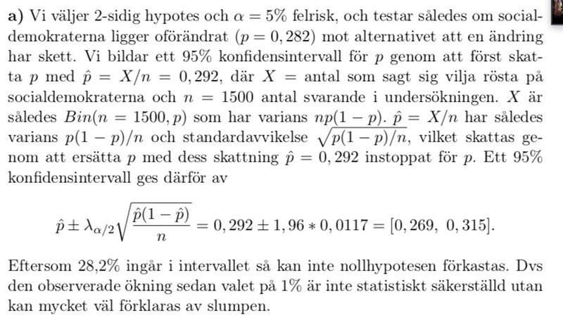 I facit löser dom denna genom att ta fram ett tvåsidigt konfidensintervall för en binomialfördelning och uppskatta värdet på p enligt följande: