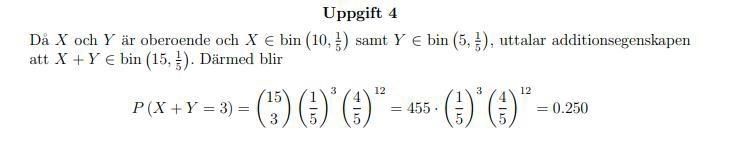En förutsättning för att detta ska hålla är att p är densamma för X och Y samt att X och Y är oberoende (läs om additionsegenskapen)