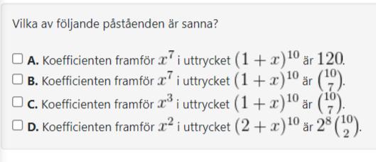 Notera i B att 10 över 7 = 10 över 3 (varför?)