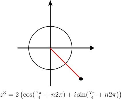 Denna ekvation har jag försökt lösa genom att skriva både höger och vänster led i polär form, och sedan sätta de lika med varandra.