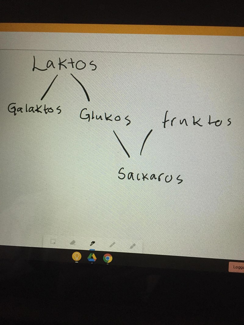 Tanken är nog att du ska rita ett eget stamträd med hjälp av kunskaper du hittar i din lärobok och/eller på nätet. Du har börjat bra med laktos. Ett litet träd skulle nu kunna vara: