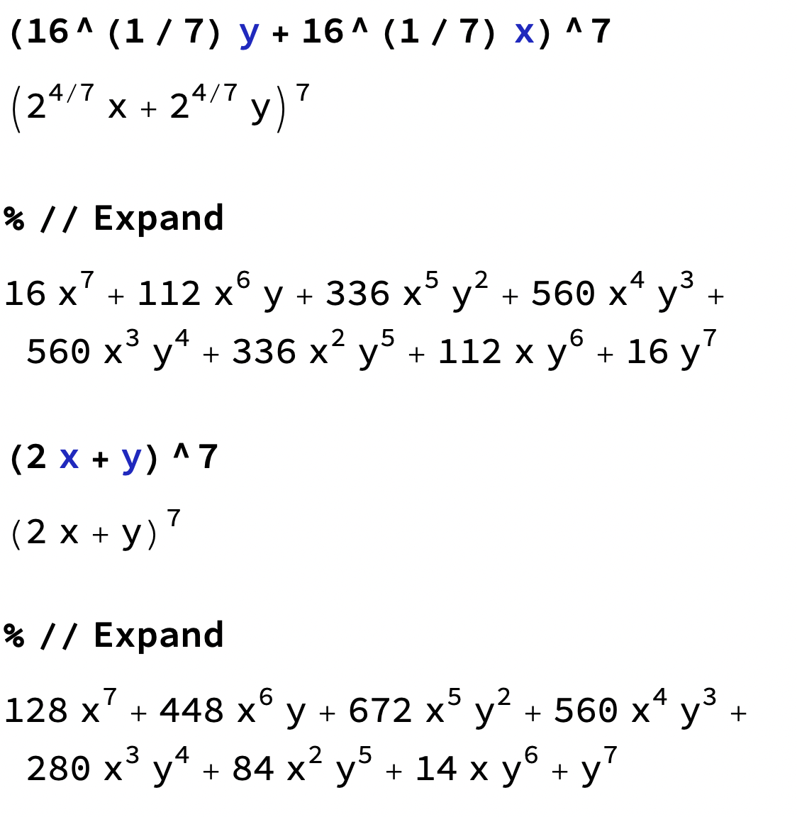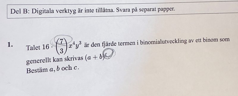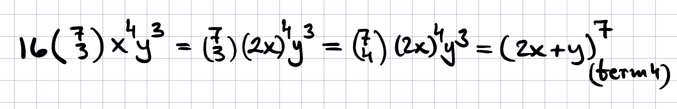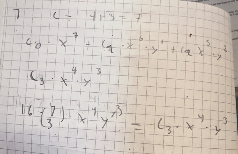 Hej! svaret i facit står (2x+y)^7 jag förstår inte direkt din beräkning. Är det de du har beräknat eller har du fått ett annat svar?
