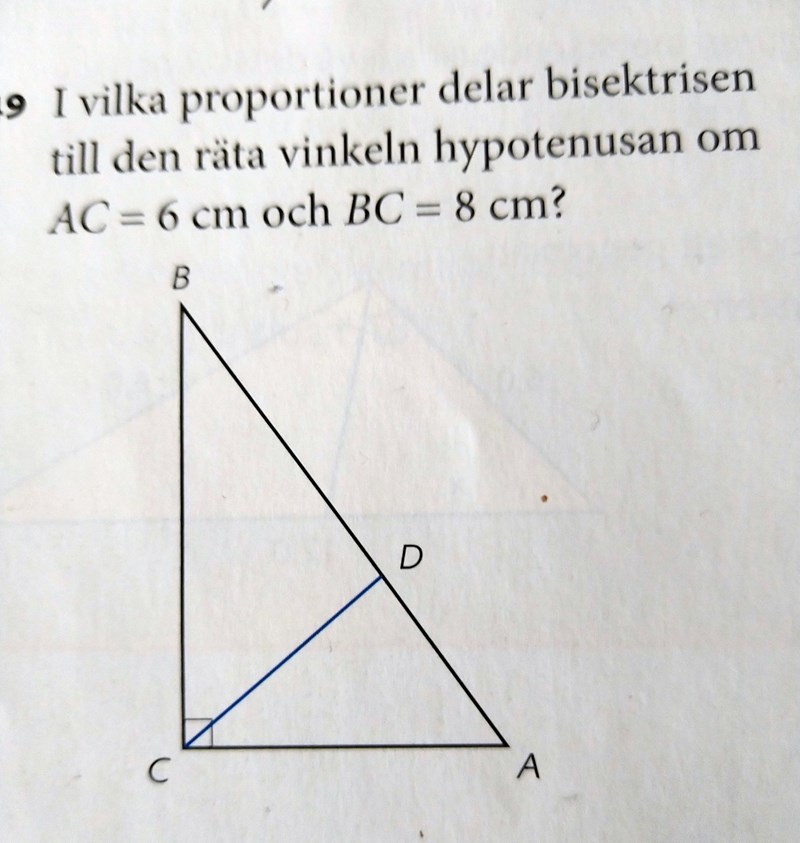 Jag är inte säker på vad dom vill att jag ska göra här. Jag försökte räkna ut pythagoras men jag kom inte så långt på det. Skulle gissa på att jag ska räkna ut hur lång bisektrisen är, men hur gör jag det?