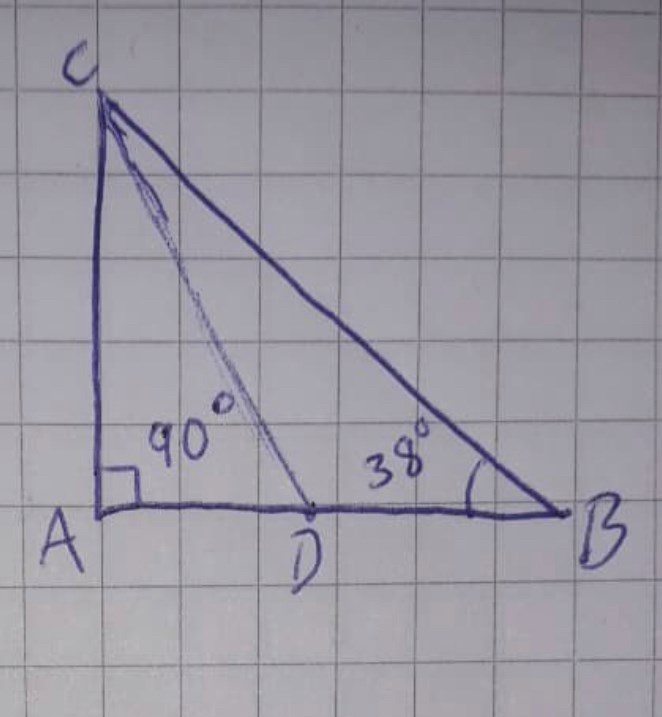 Om du börjar kolla på triangel ABC, du vet att A är rät och att b är 38 grader. Vad är vinkelsumman i en triangel? Vad är då c?