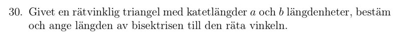 En enkel strategi är att ställa upp cosinussatsen en gång för samt en gång för . Slutligen kan du eliminera och med bisektrissatsen samt lösa ut .