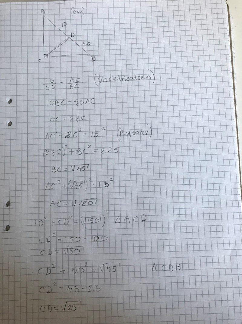 jag har räknat ut kateterna men problemet är efter det, när jag ska räkna ut CD. Jag tänkte att jag kanske kunde använda pytsats men jag får olika värden på CD, hur ska man tänka?