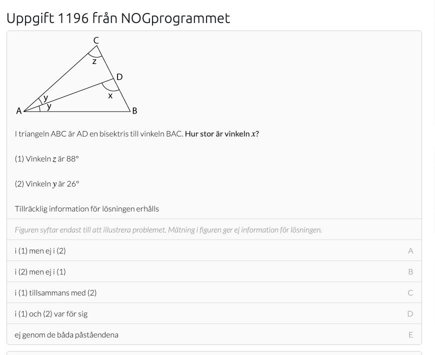 Kan vara värt att tillägga att för en bisektris i en triangel gäller bisektrissatsen, vilket kan vara användbart ibland