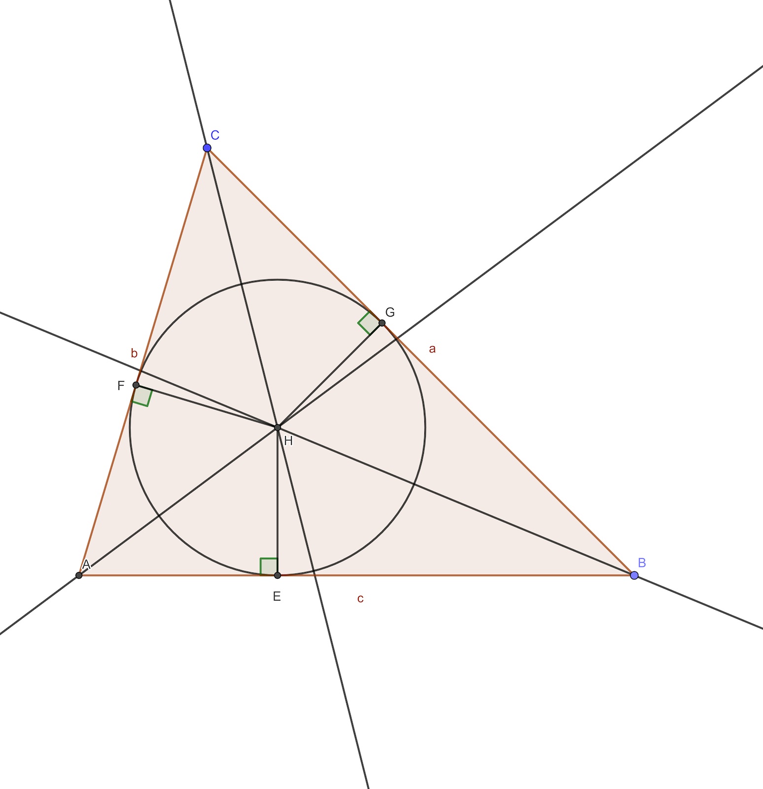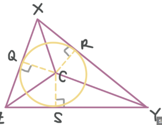 En bra idé kan vara att försöka lista ut vad radien av den inskrivna cirkel är. Känner du till formlerna (Herons formel) och för arean av en triangel (där , och är längderna av sidorna i triangeln, och är halva omkretsen)?