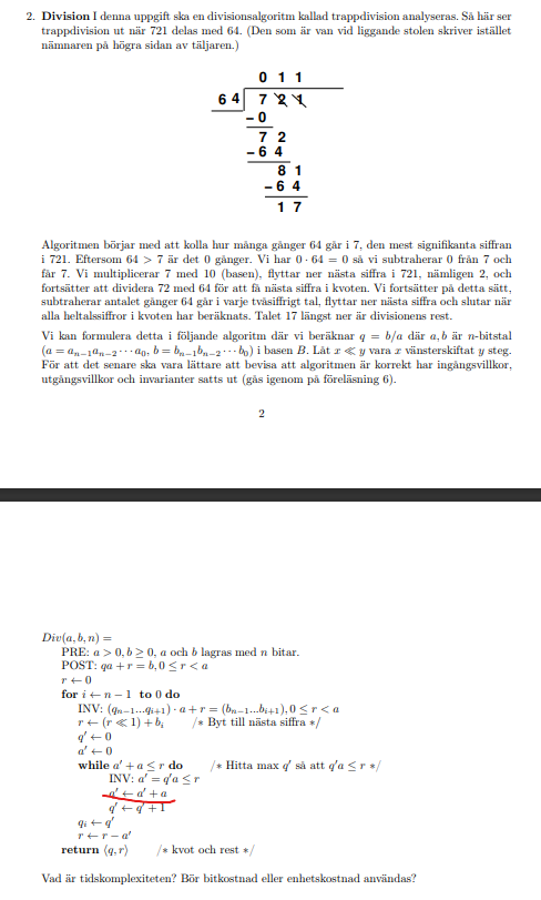 (kommentar: där jag ringade in blev det kanske lite svårläst: a' <- a' + a står det på den raden, q' <- q' +1 i den raden under.)