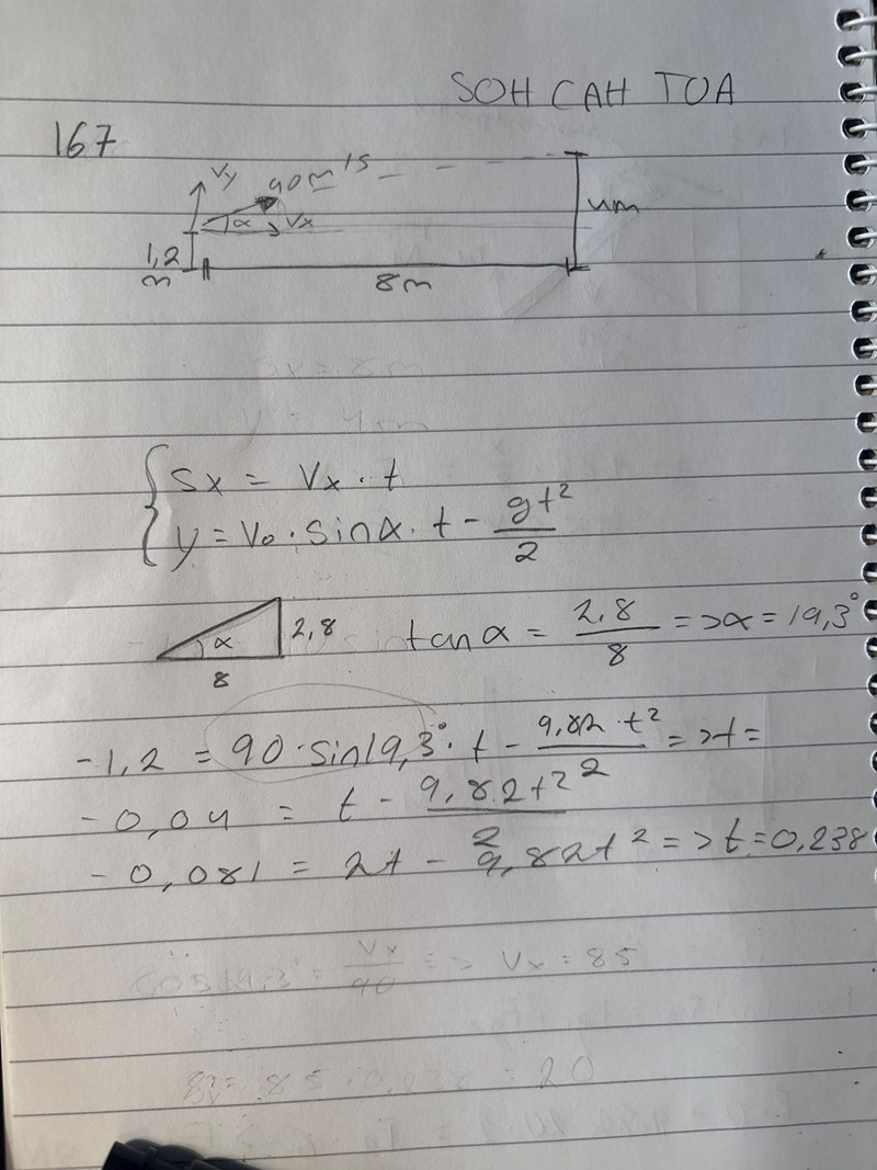 Han siktar på en punkt 4m upp. Så här tolkar jag det:
