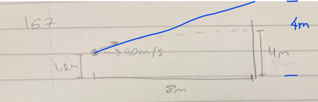 4-1.2m och 8m ger vinkeln på utgångshastigheten.
