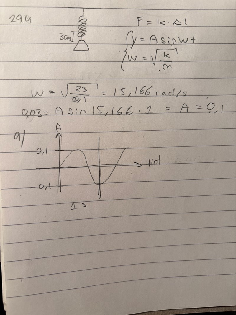 Vid t = 0 ska i alla fall avståndet från jämviktsläget vara 3 cm, inte 0.