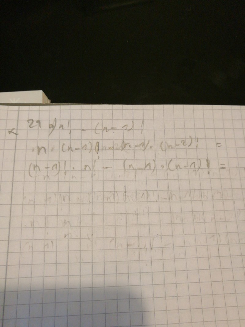 Du kan faktiskt bryta ut (n-1)!. Om det känns lurigt att faktorisera fakulteterna så kan du kalla (n-1)! för något godtyckligt, till exempel x.