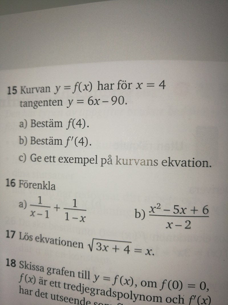 Jag behöver hjälp med uppgift 15 i matematik 3c. Jag har löst a och b. Men körde fast på c)