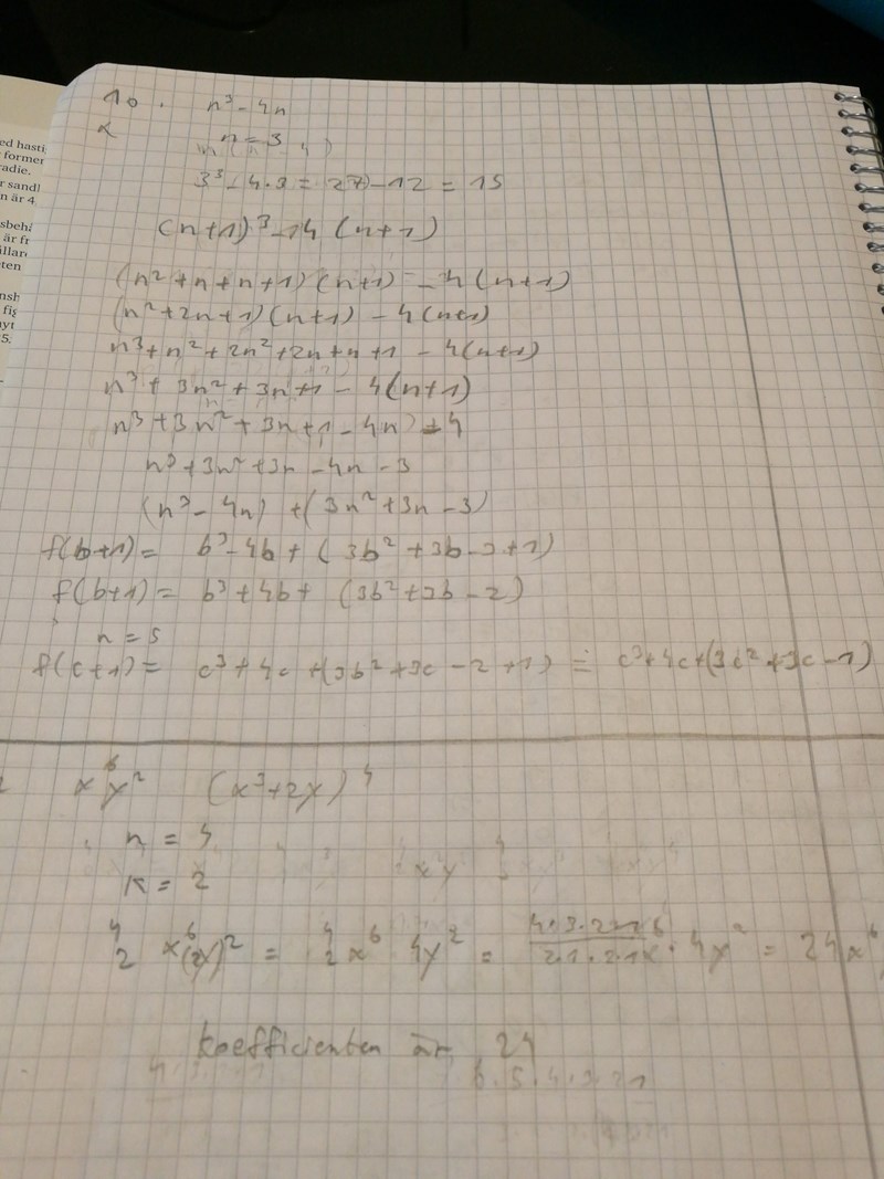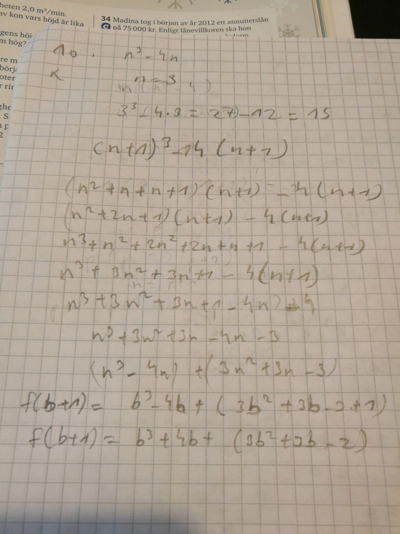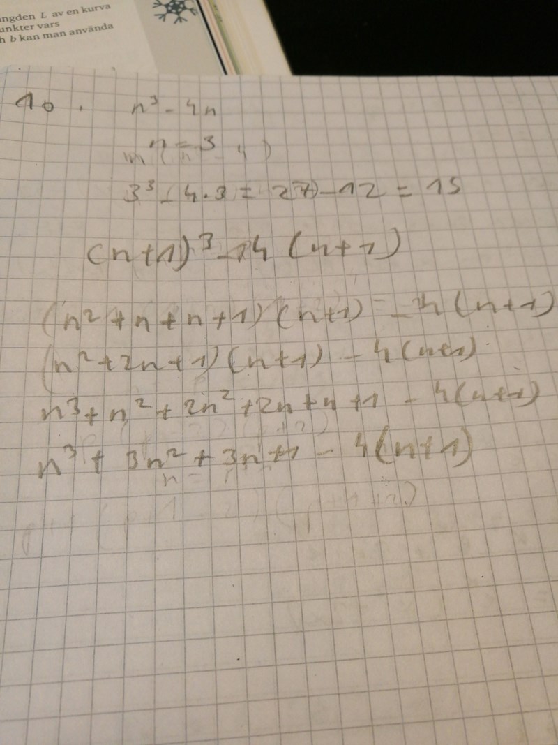 Mahiya99 skrev:Ok så det svaret är facit alltså? Jag tror ej ettorna tar ut varandra eftersom n^3+3n^2+3n-4n-3