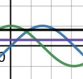 Du har två korsningar mellan den blå kurvan och den svarta linjen, men bara en korsning mellan den gröna urvan och den lila linjen.