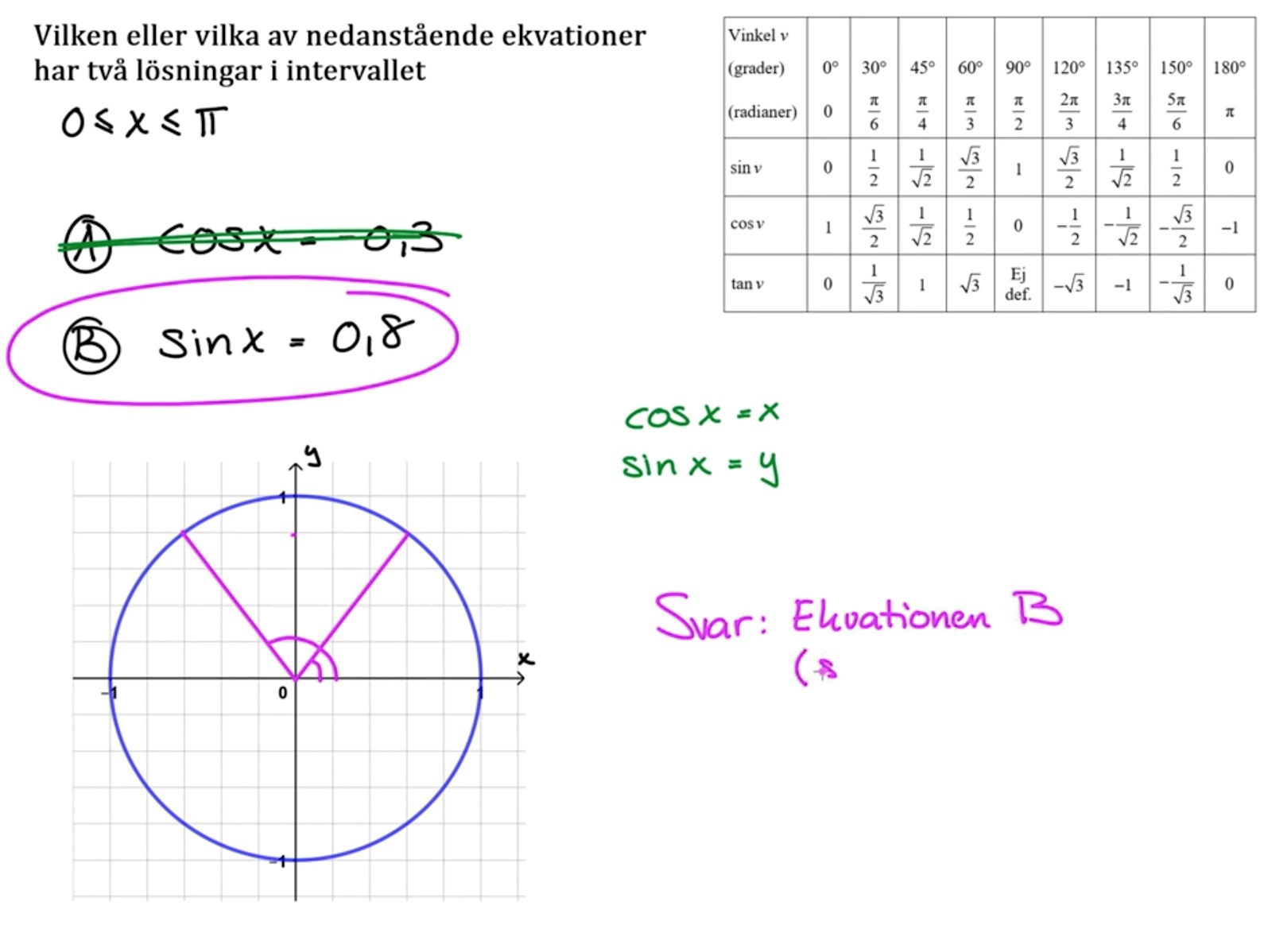 Det går alldeles utmärkt att rita kurvorna och titta på dem, men fö rde flesta går det snabbare att rita upp enhetscirkeln.