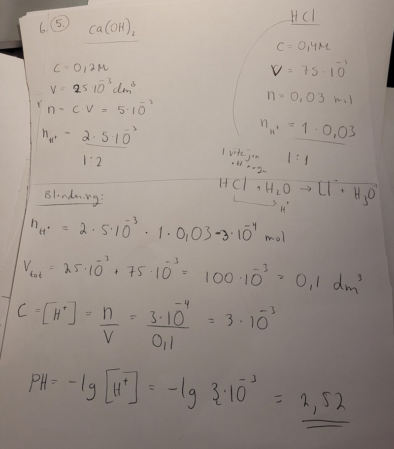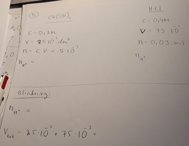 Jag behöver hjälp att lista ut substansmängden för väte för kalciumhydroxid och HCl.