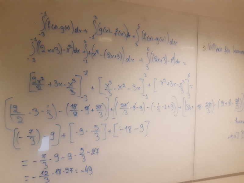 Ursäkta att jag sa att det var rätt. Du skrev ju rätt i dina f(x)-g(x) och då sluta jag kolla så noga.. men sen när du satte in funktionerna blev det tvärtom ja.