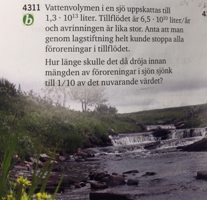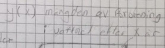 Skaft skrev:y(x) står beskrivet: mängd föroreningar i vattnet efter x år.