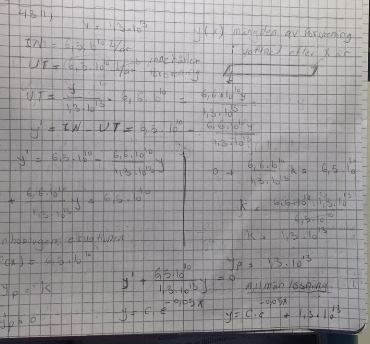 y=C*e-0,05x + 1,3*1013 den allmänna lösningen. Men det är fel? vad ska man tänka på uppgifter som handlar om blandningsproblem?.jpg?width=800&upscale=false)