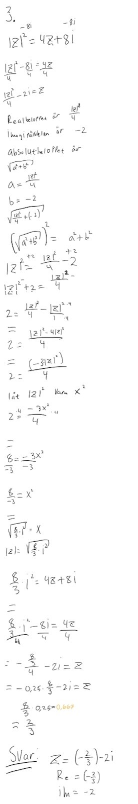 ekv 1: 4b +8 = 0  (imaginärdelen)