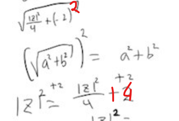 Varför ska endast andra termen i rottecknet vara upphöjt till 2? I min beräkning var det ju isåfall fel att inte båda termerna var upphöjda till två? Skrev du 14 istället för -2? alltså +14?