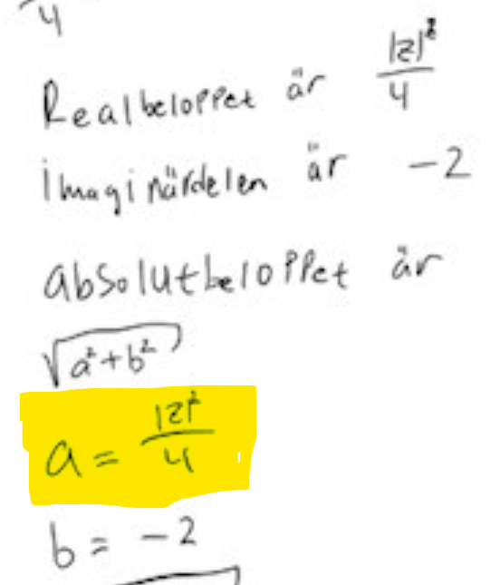 a=|z|24a = \dfrac{|z|^2}{4} är ekvivalent med att a=a2+b24a = \dfrac{a^2 + b^2}{4}.