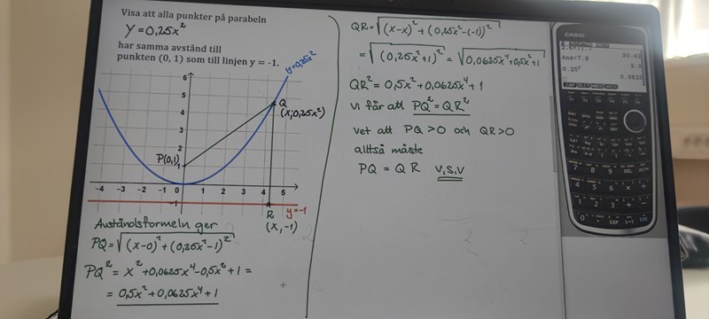 På denna lösningen använde han en punkt som ligger på den possitiav delen av x och y koordinaterna, första kvadraten. Därför blir sträckan PQ possivit och lika med RQ eftersom en stevka ALLTID är possivit men jag undrade ifall det hade ändå blivit possitiv om jag hade tagit en sticka från 4 kvadraten, då x och y värden är negativa.