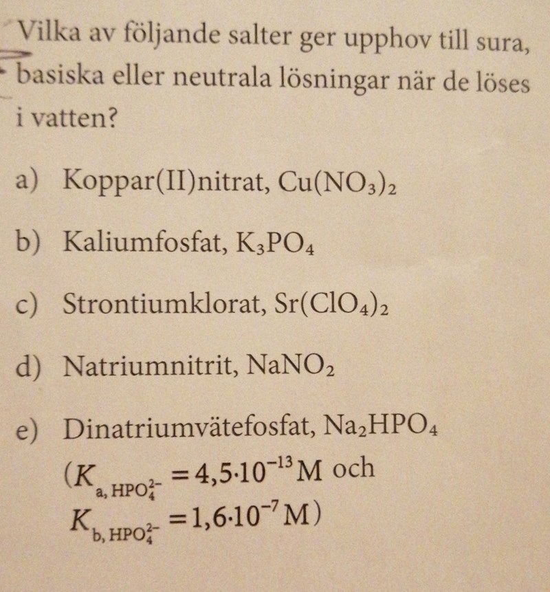 Hej, jag har försökt förstå mig på uppgiften nedan men det går inte särskilt bra. Hur ska jag tänka kring vad som avgör om en lösning blir sur, neutral eller basisk?