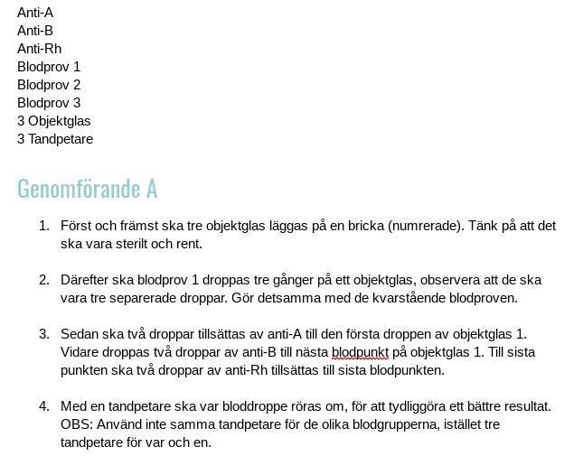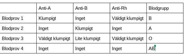Jag har genomfört en blodlabb för att identifiera vilka blodgrupper som har antigen mot vilket. Och jag har kommit fram till att :