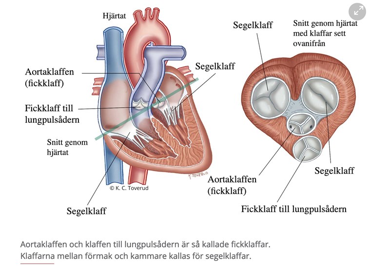 Bilden nedan kommer ifrån 1177.se fungerar som en illustration över de fyra klaffarna som finns i hjärtat.