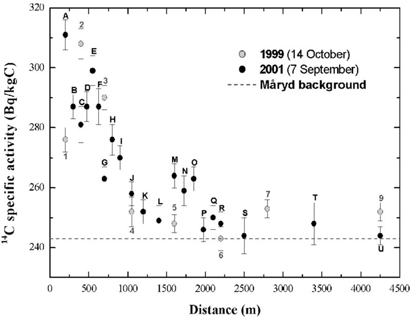Så den moderna aktiviteten är 26 Bq/100gC (det är ett rimligt värde).