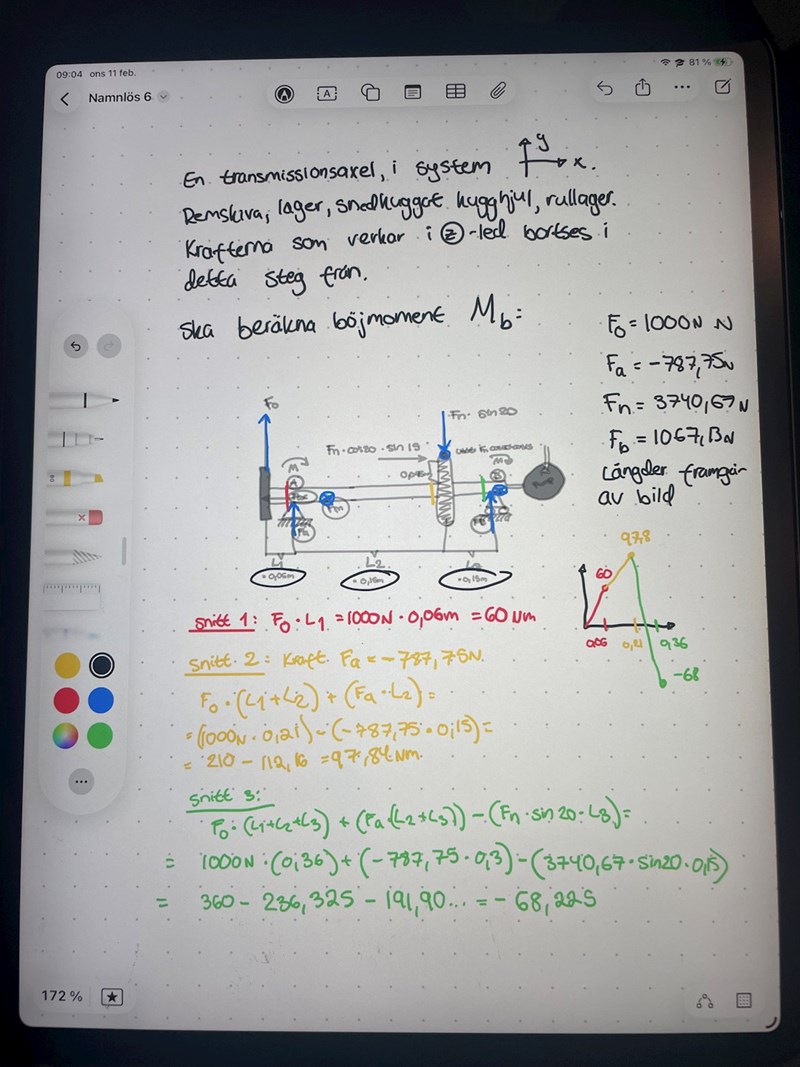Jag har en omfattande konstruktionsuppgift, som mynnar ut i att en axel ska dimensioneras.