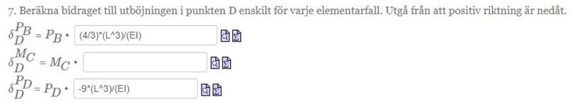 Hej! har suttit och försökt att lösa uppgiften ett tag nu utan att förstå. Har fått det rätta svaret! Men kan verkligen inte förstå hur man kommer fram till det svaret. Har provat på olika sätt utan att lyckas. Använde mig av den andra formeln då "xi" är lika med noll ute vid den fria änden. Alltså (). Hur ska man tänka/göra? Det är då för de tre uppgifterna som finns på bilden.