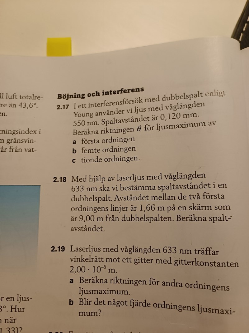 Rita figur. Den givna informationen ger tangens för vinkeln till första ordningens max.