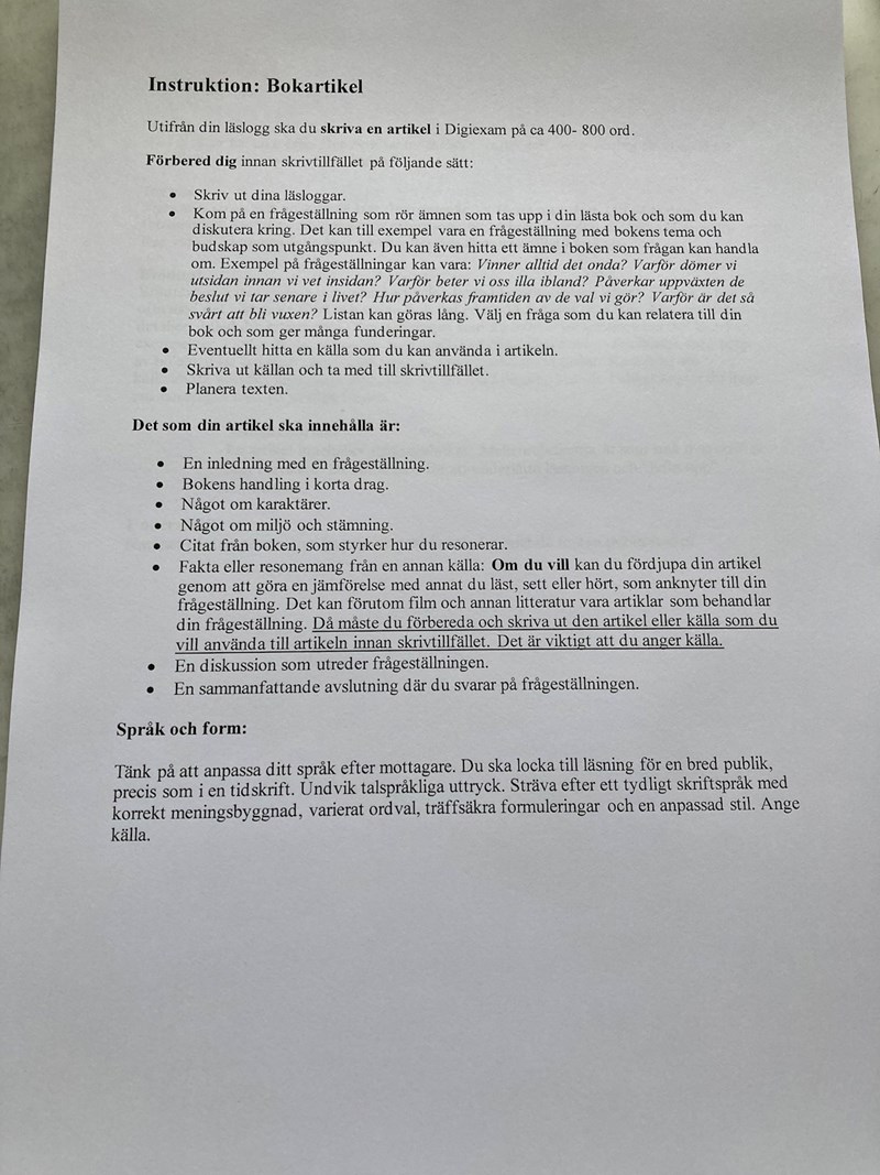 Hej! Vi ska skriva en Bokartikel i kursen svenska 1 baserad på en bok vi nyligen läst. I mitt fall är boken ”Finns det björkar i Sarajevo?”. En klassisk ungdomsbok om tonåringen Kevins liv, kampen för att passa in som osäker tonåring, den stora första kärleken och familjerelationer med en utvecklingsstörd storebror.