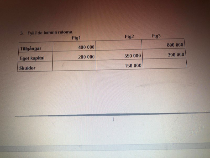 men min gissning är att att jag ska ta tillgångarna -eget kapital kan det stämma? Så på första är svaret  200 000 på andra är svaret 800 000 och tredje svaret 500 000
