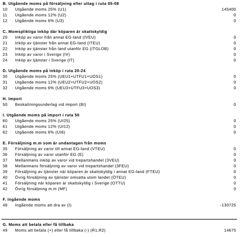 Först undrar jag om jag gjort rätt på ver 14 där uppgiften är att kontera överföringen av ingående och utgående moms till konto redovisad moms? Bifogar bilder på både momsrapporten och hur jag skrev in det i verifikationen.