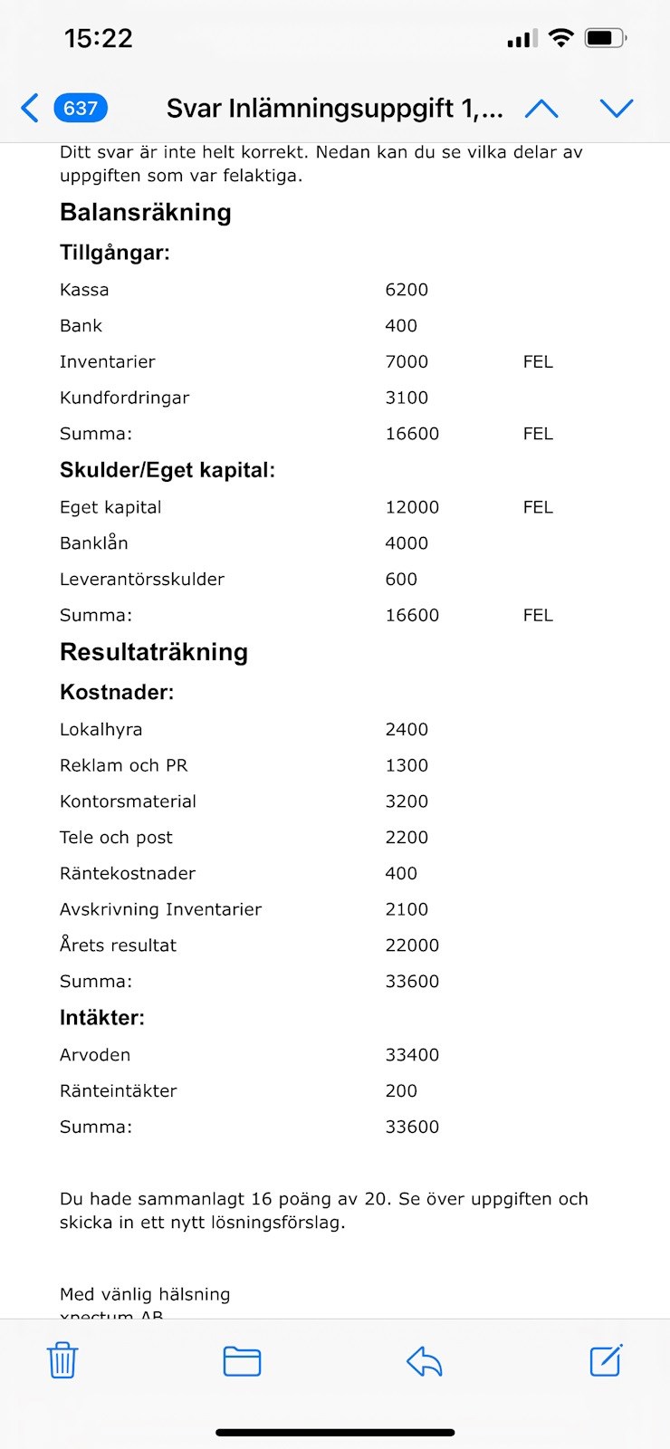 14600 för balansräkningen ska alltid ha samma sluträkningen