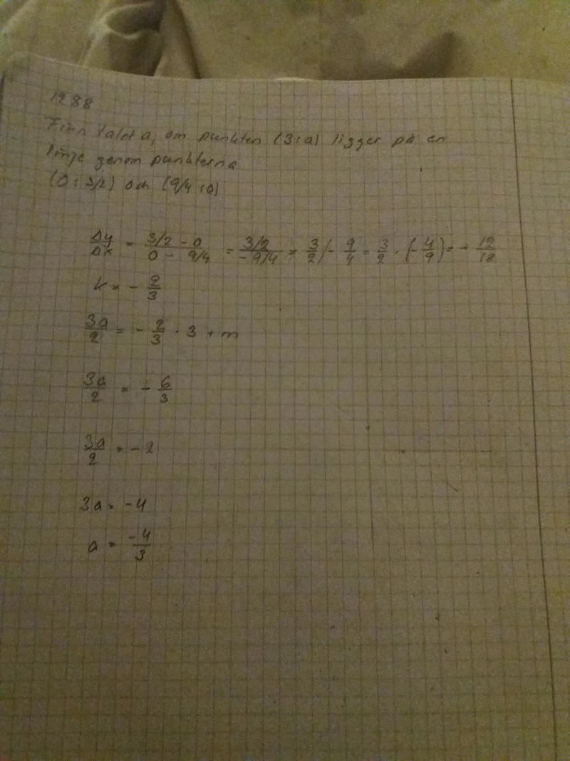 Du skriver då 3a/2 = (-2/3)*3 + m men det stämmer inte. Var kommer 3a/2 ifrån?