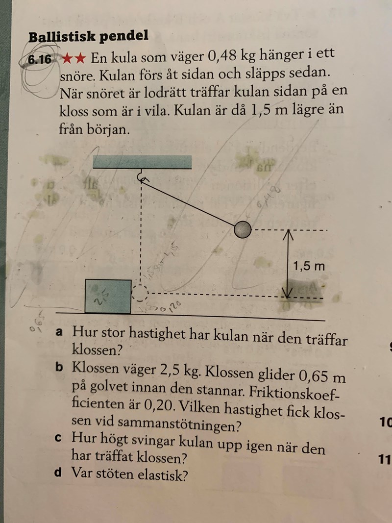 Jag skulle börja med att räkna på omvandlingen mellan lägesenergi och rörelseenergi.