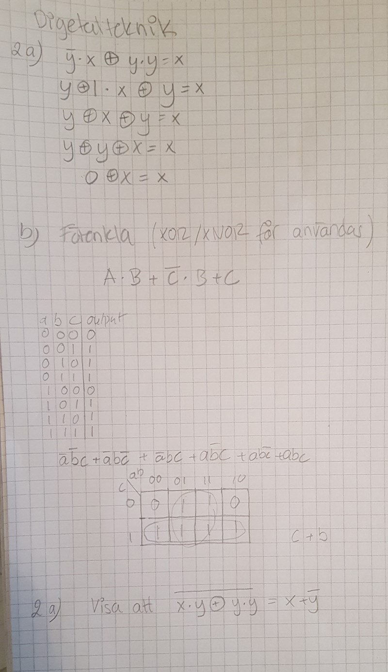 I uppgift 2b står det att (XOR/XNOR) får användas men jag får svaret till c + b.