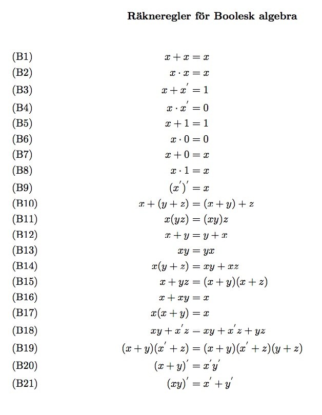 Förenkla det logiska uttrycket med hjälp av räknelagarna i booleska algebran: