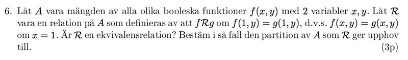 Det där tog tre minuter, och största delen la jag på att förstå hur jag skulle använda formateringsverktyget :). Gör motsvarande för övriga delmängder (förslagsvis med papper och penna istället). Observera att det finns flera sätt att uttrycka samma relation, så du kan få andra uttryck än facit och ändå ha rätt.