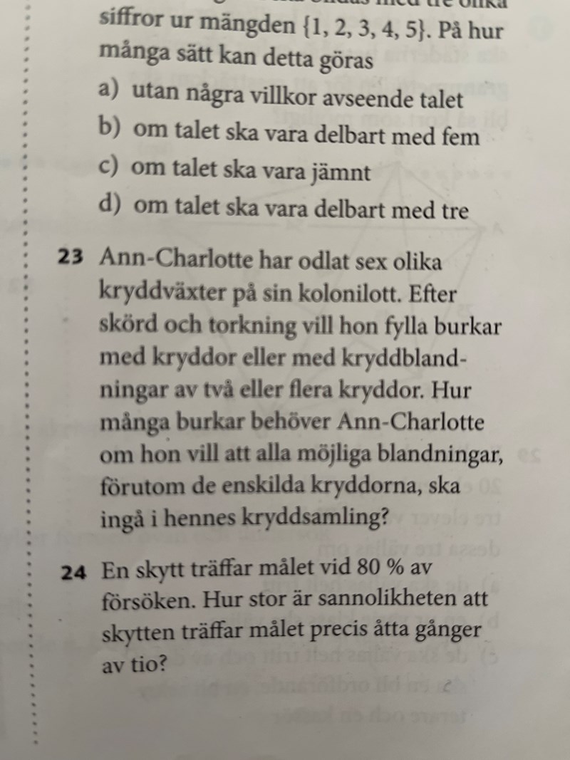 I denna uppgift, är det menat att jag ska lägga till de enskilda kryddorna utöver de 57 blandningarna? I början står det kryddor eller kryddblandningar, men mot slutet står det förutom. Jag förstår inte poängen med att skriva förutom om de också ska räknas in.