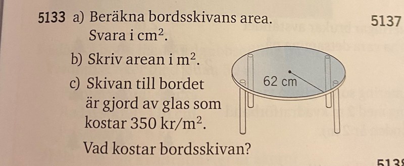 Vilken form har bordet? Hur ser formeln ut för att beräkna en sån form?