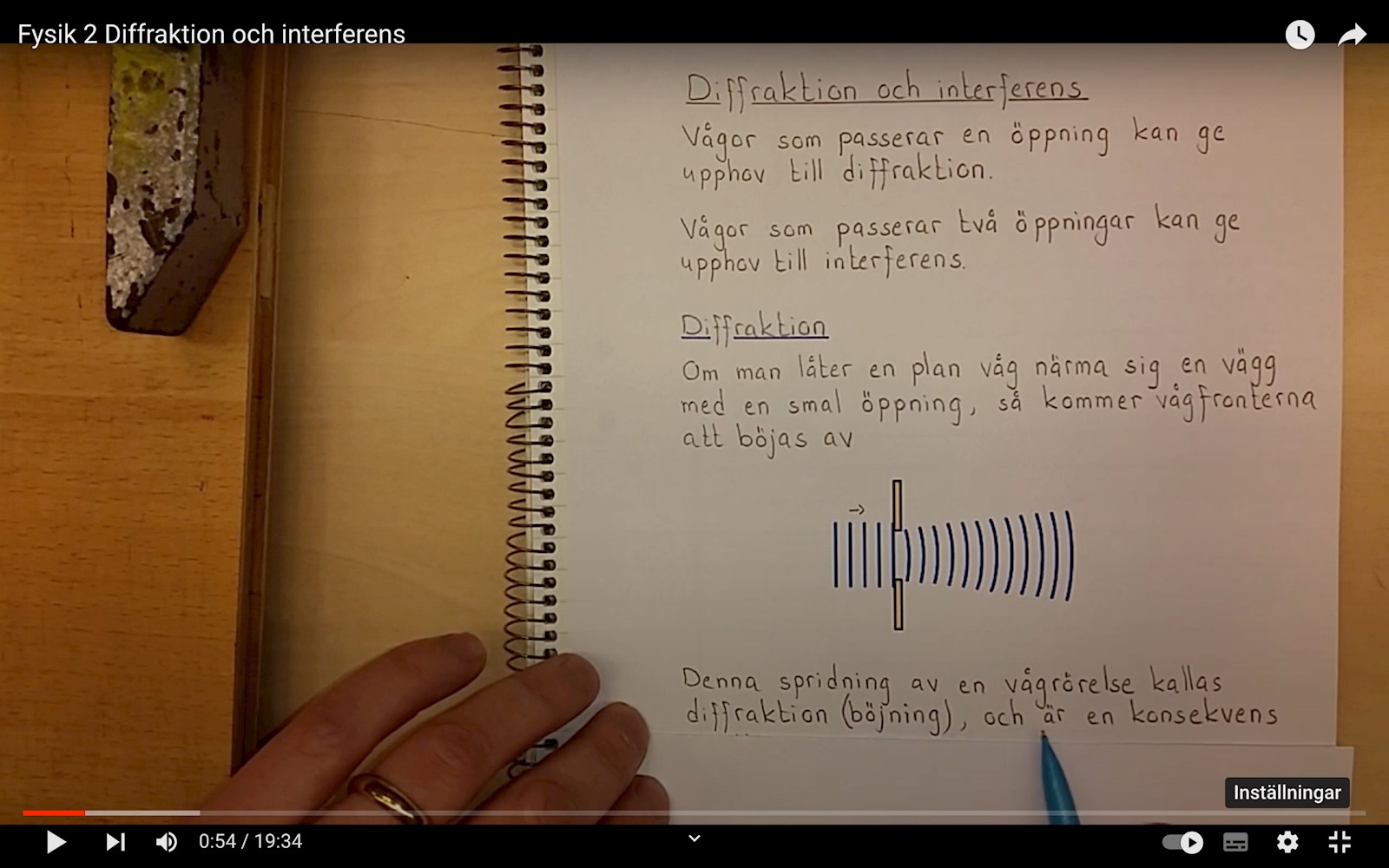 Om du tittar på bilden ser du att vågorna är raka till vänster om spalten är plana (raka) medan vågorna är krökta till höger om öppningen. Vågrfonten är den första vågen, den längst till höger i det här fallet.