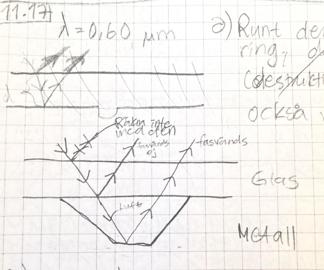 På uppgiften ovan har jag gjort en egen anteckning om att den första reflektionen inte ska tas med. Jag minns emellertid inte av vilken anledning. Om det skulle vara för att majoriteten av fotonerna inte reflekteras, skulle ju ändå andra reflektionen vara svagare än första?